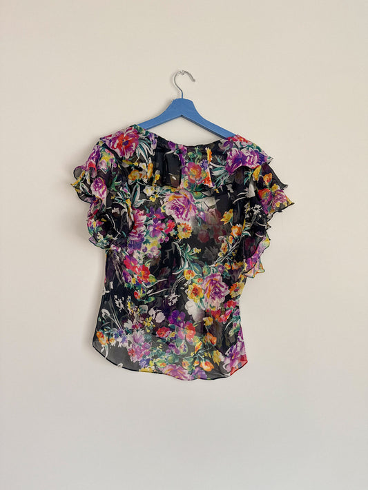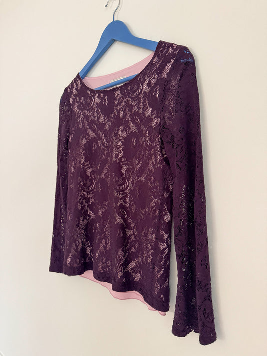 1980's Lace Cropped Fringe Shimmer Top | Size M/L