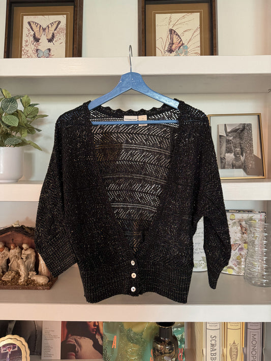 1990's Black Shimmer Cropped Knit Cardigan | Size M
