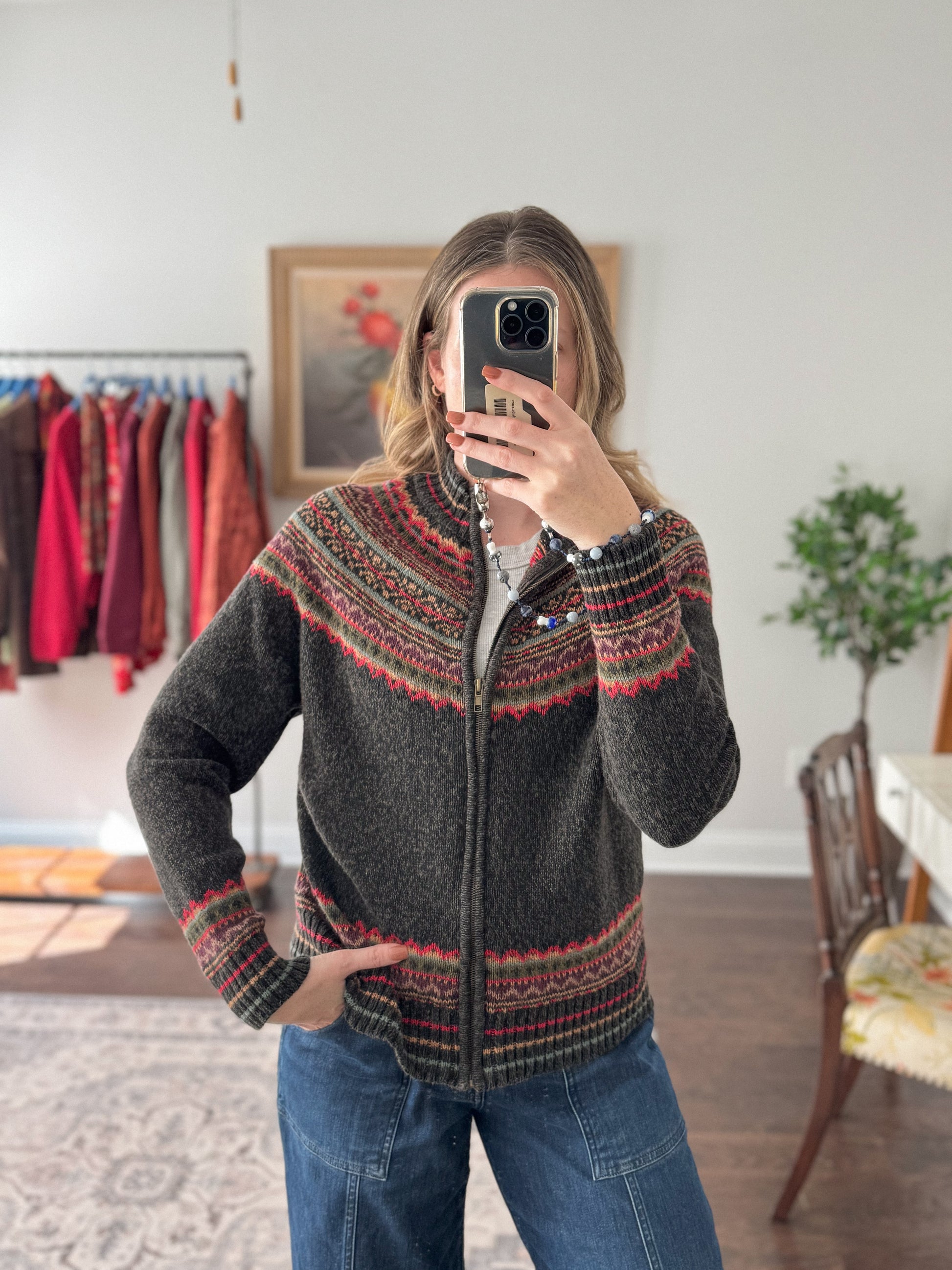 Vintage Fair Isle Zip Up Sweater