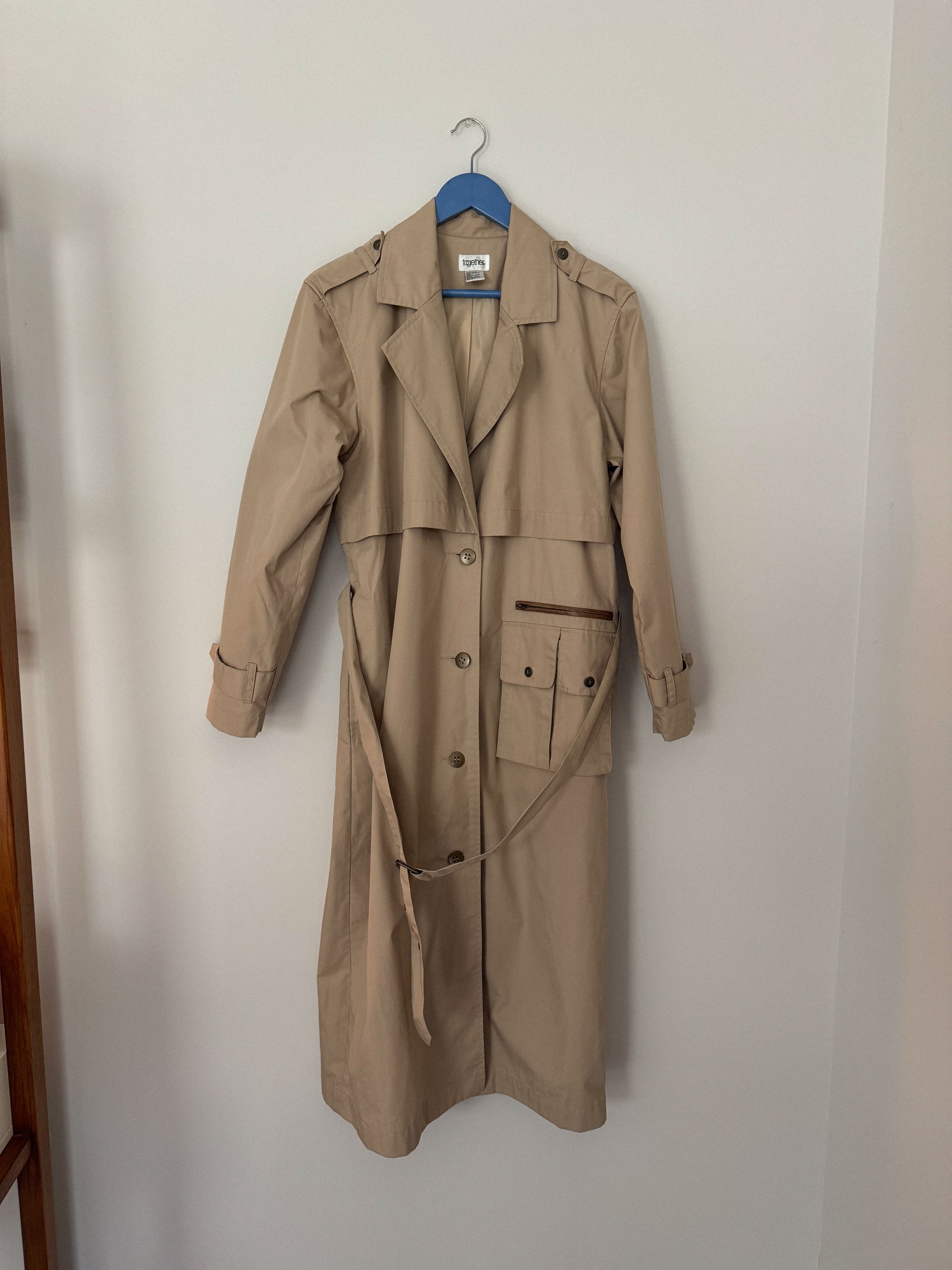 Vintage Leather Accent Trench Coat