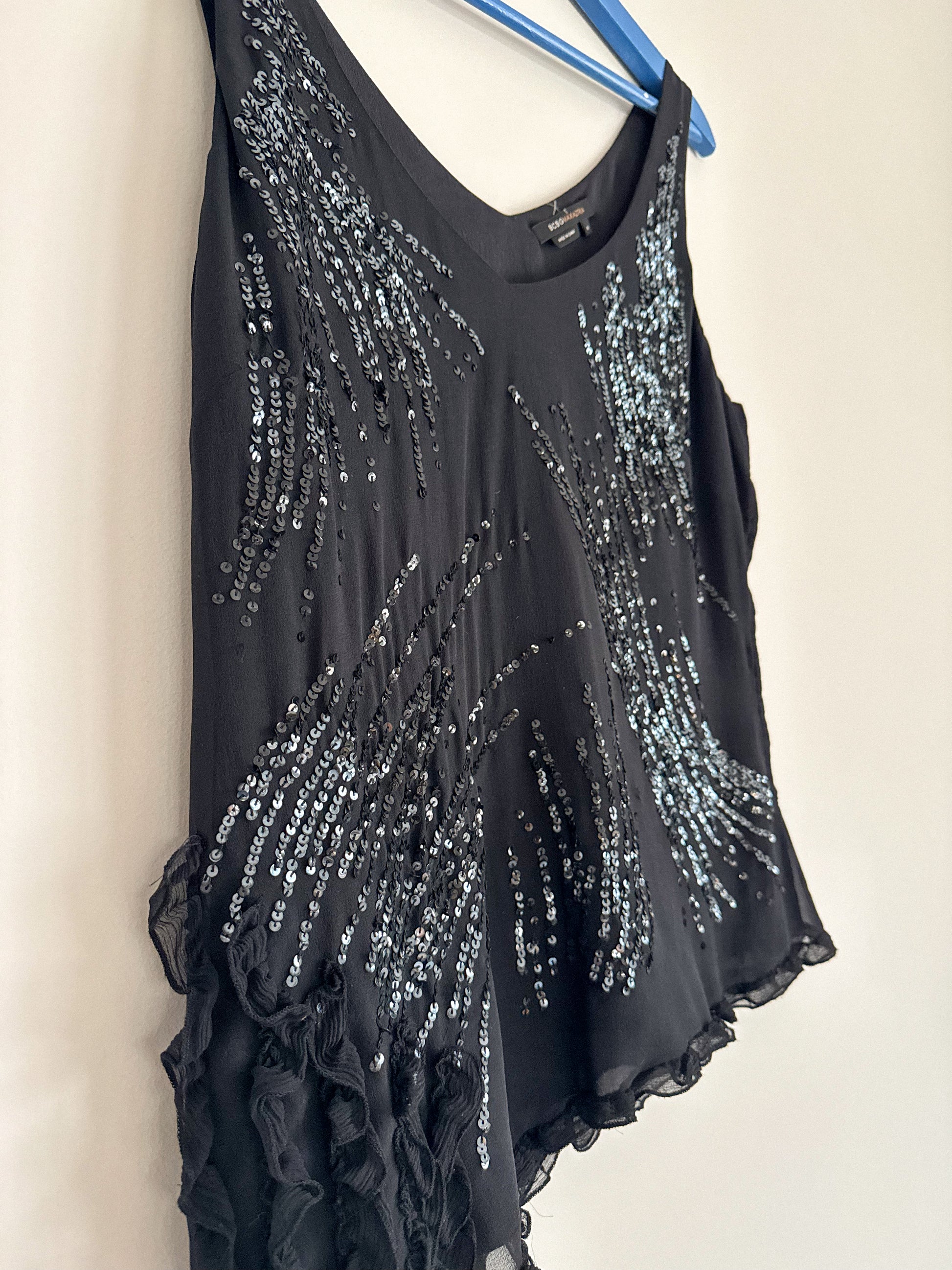 Y2K Rare BCBG Sequin Silk Asymmetrical Hem Tank